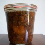 Voeg de suiker, sinaasappellikeur, 300 ml brandewijn, peperkoekkruiden en zout toe aan de vruchten.