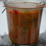 Vul gesteriliseerde weckpotten tot 2 cm onder de rand met de goulash. Weck de weckpotten gedurende 75 minuten op 100 graden.