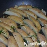 Pel en pers de knoflook fijn. Doe de roomboter in de pan en fruit de knoflook gedurende 2 minuten. Voeg de aardappelpartjes toe en bak ze aan alle zijden in de knoflook. Voeg eventueel nog verse rozemarijn toe.