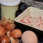 Prak het hardgekookte ei fijn met een vork en snij het sjalotje of de kleine ui heel fijn.