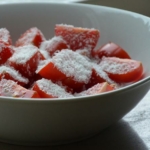Strooi de kokos over de tomaten. Roer voorzichtig met een lepel om en laat het even intrekken.