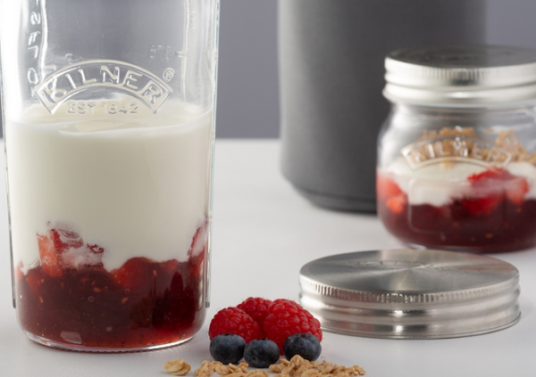 Zelfgemaakte yoghurt met bessen zonder yoghurtmaker.